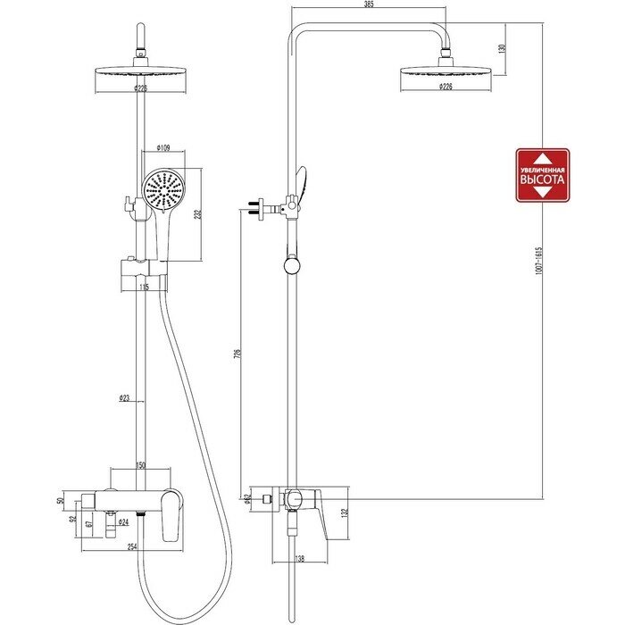 | Размеры панели / стойки | 1007-1615x385 мм |
