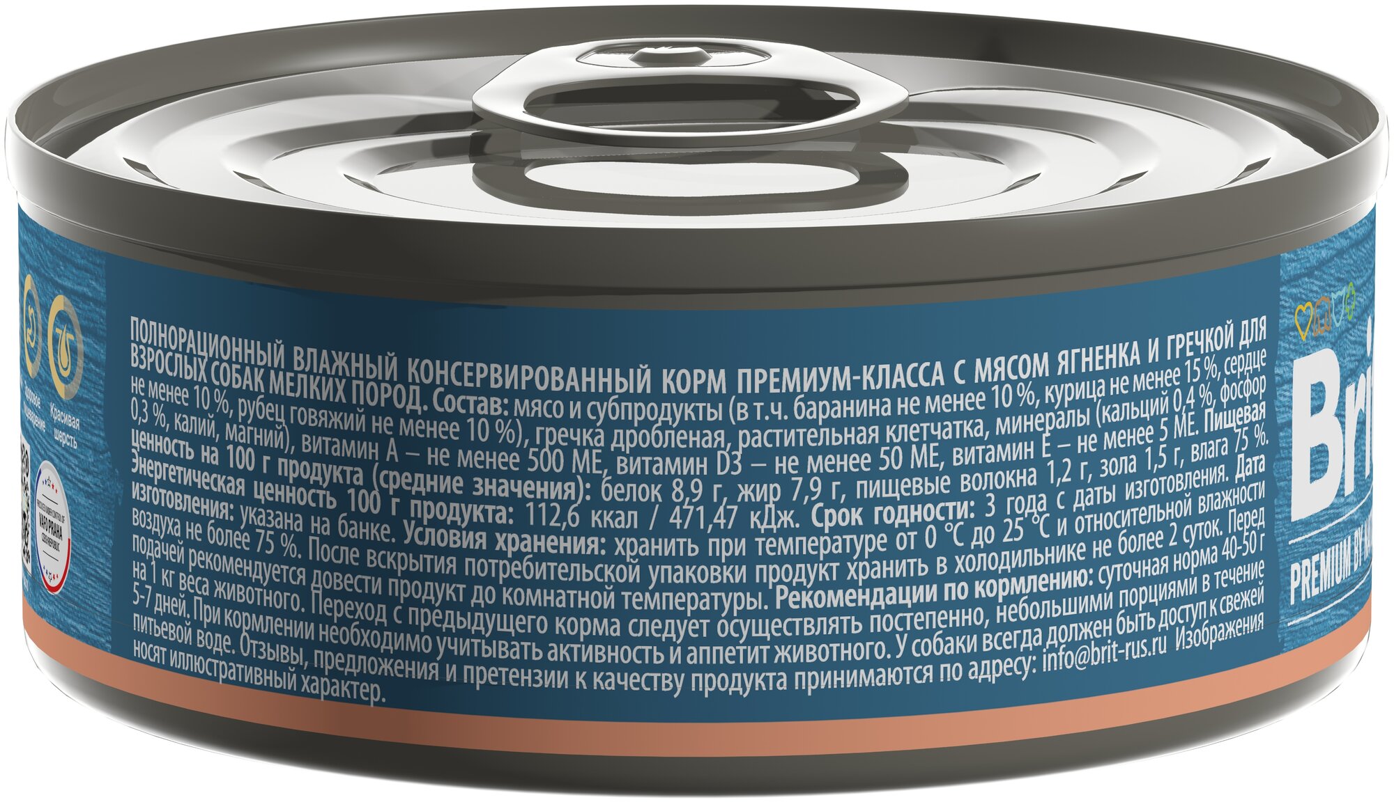 Корм для собак BRIT Premium by Nature для мелких пород, ягненок с гречкой банка 100г