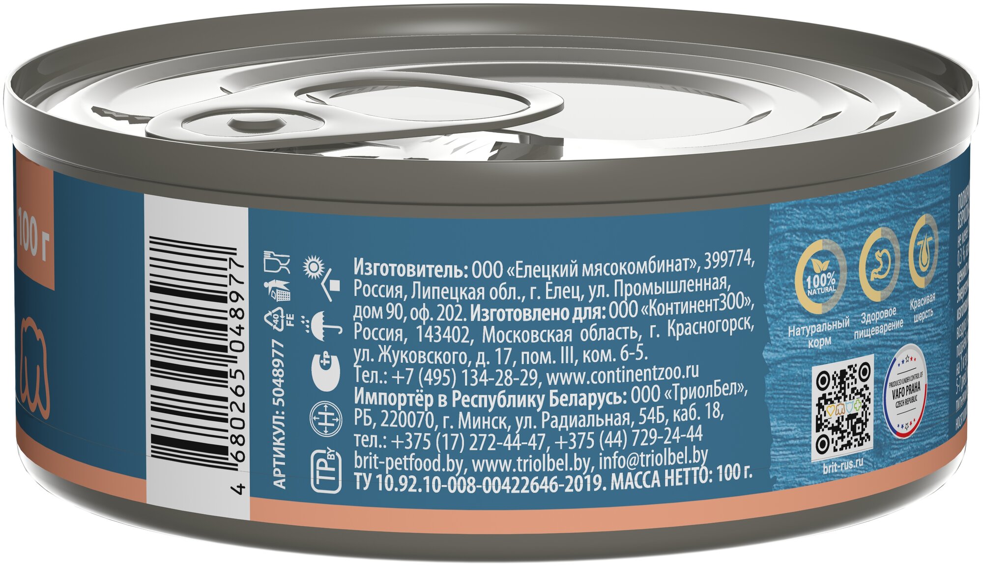 Брит Премиум by Nature 100г ягненок гречка консервы для собак мелких пород 12шт