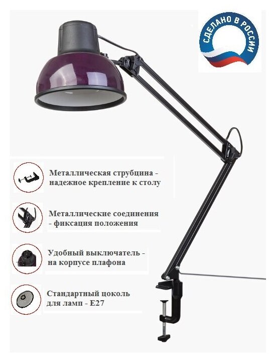 Настольная лампа Бета-к струбцина фиолетовый Настольный светильник