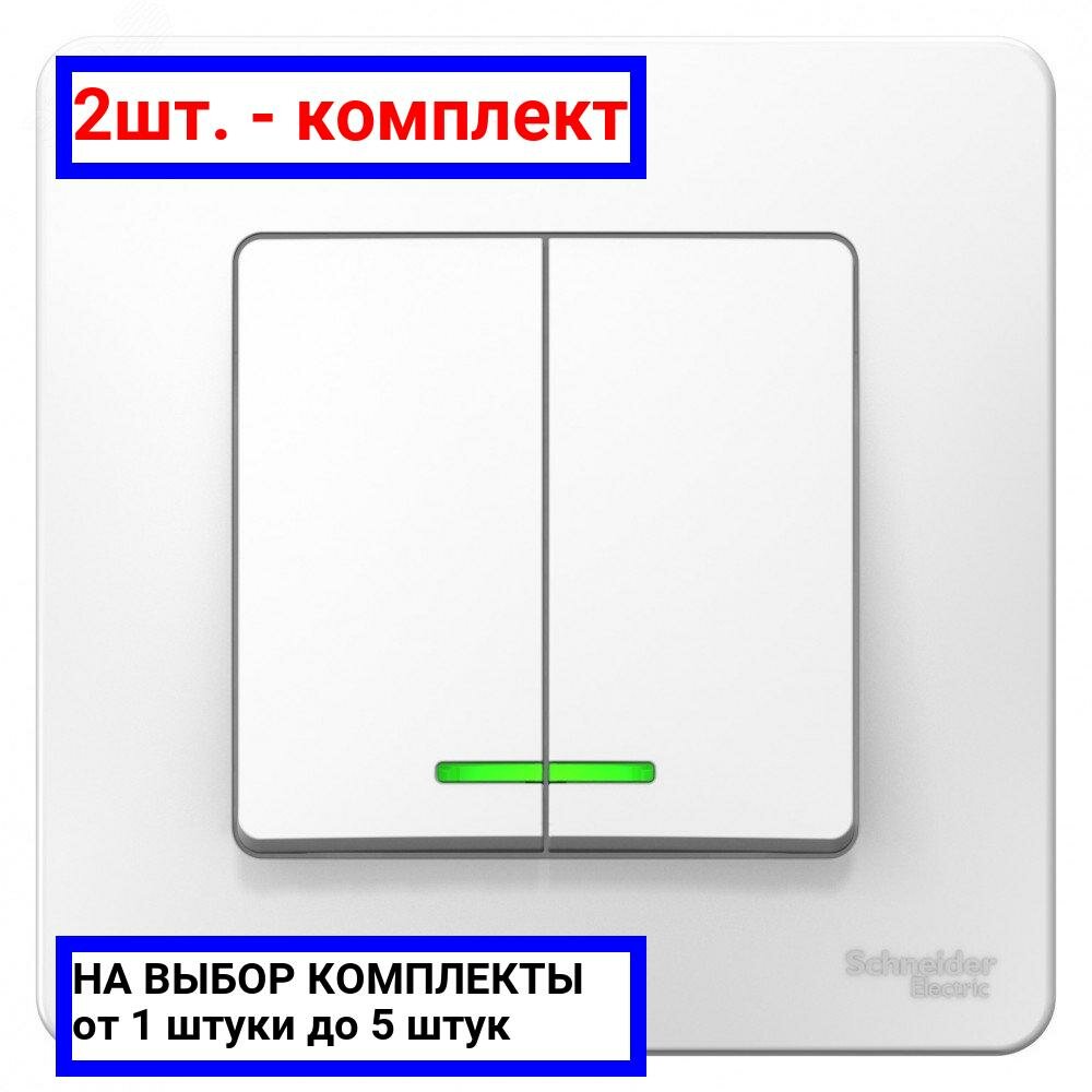 Выключатели 2шт. - BLANCA скрытой установки двухклавишный выключатель (cх.5) с подсветкой, 10A, 250B, белый / Systeme Electric; арт. BLNVS010511; оригинал / - комплект 2шт