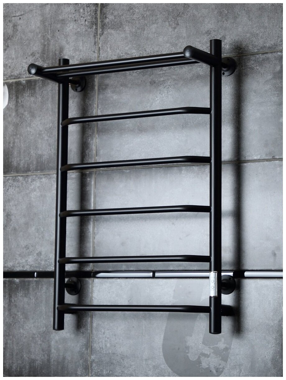 Полотенцесушитель Полотенцесушитель электрический Тругор-Браво 80x50 черный с терморегуляторм, 5 перекладин + полка