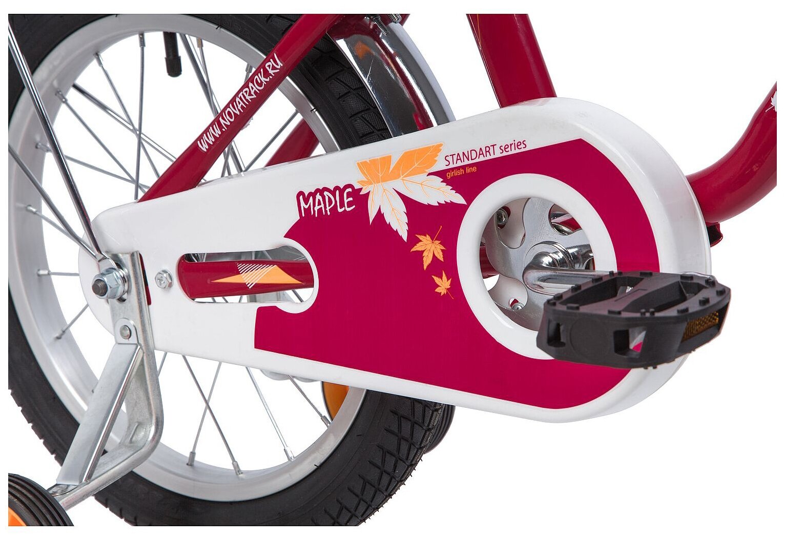 Детский велосипед Велосипед Novatrack 16" Maple, красный, полная защита цепи, тормоз нож.,крылья и багажник хром, пер.