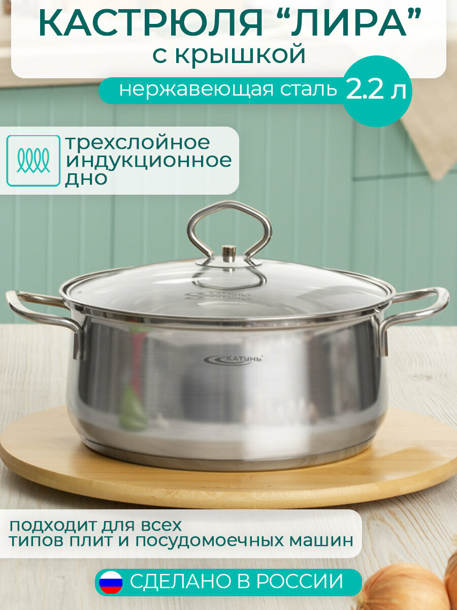 Кастрюля 2,2 л катунь, лира, KT-CP-0022, нерж.сталь, зеркальная полировка 1 406 ₽ Подробнее