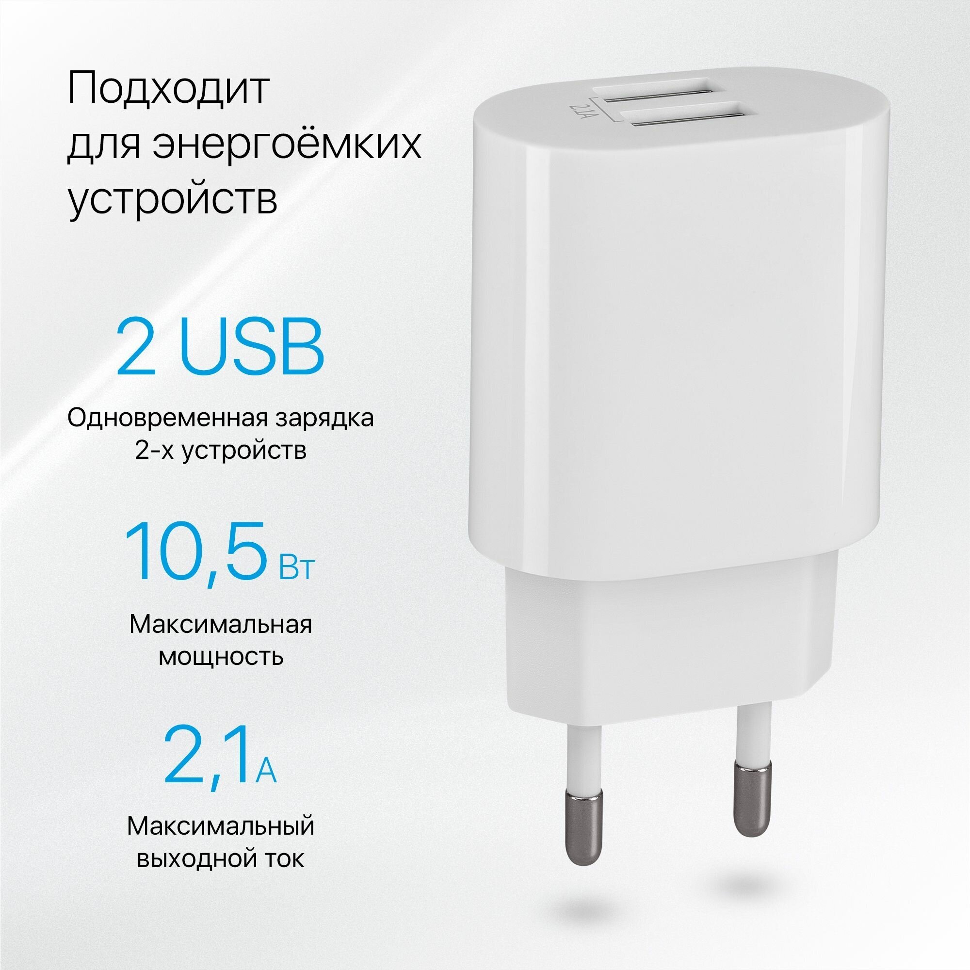 Сетевое зарядное устройство для телефона Defender UPC-22 2xUSB,5V/2.1А, с кабелем micro-USB в комплекте / зарядка для телефона