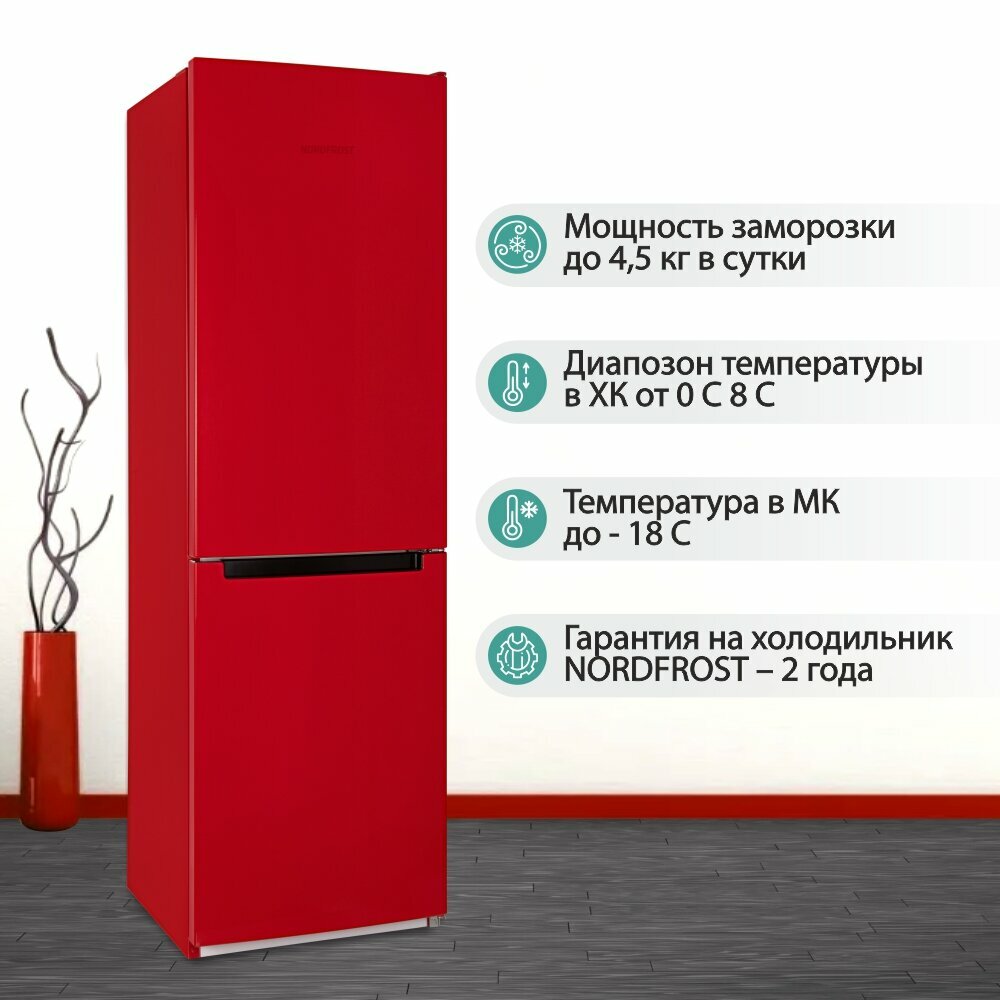 Холодильники Холодильник NORDFROST NRB 152 R двухкамерный, 320 л объем, красный