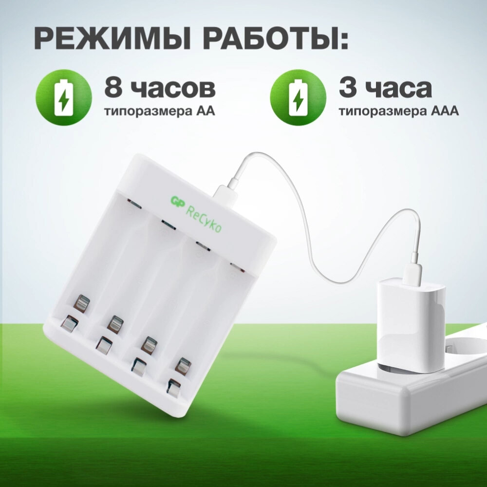 Зарядное устройство GP для аккумуляторных батареек АА и ААА, на 4 слота, с кабелем micro USB 1 194 ₽ Подробнее