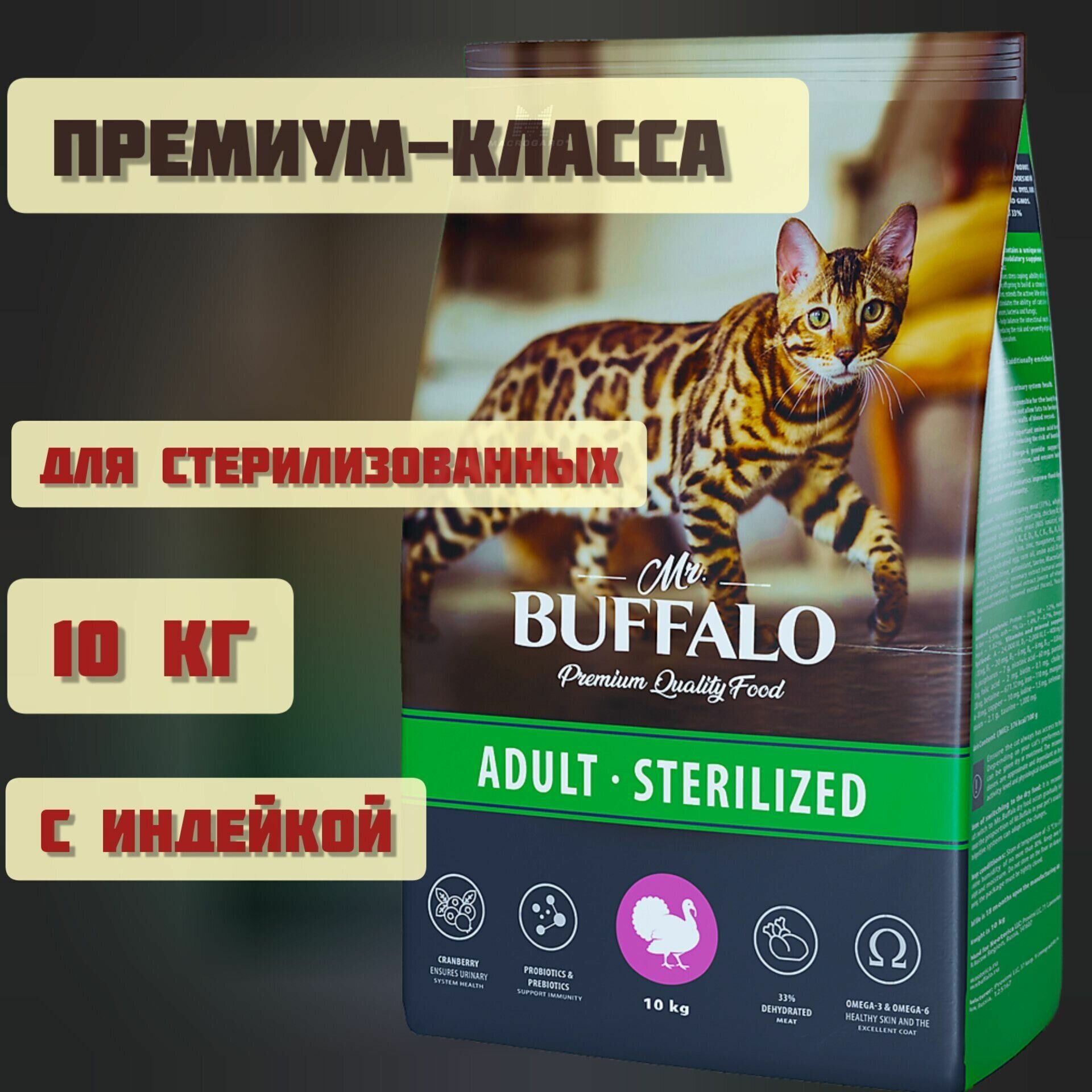 Mr.Buffalo корм для стерилизованных кошек, индейка 10 кг