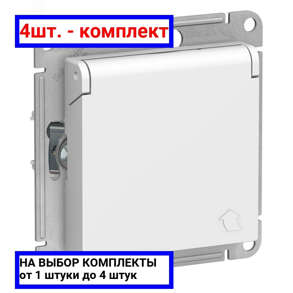 Розетки 4шт. - Розетка ATLASDESIGN с заземлением со шторками с крышкой 16А IP20 механизм белый / Systeme Electric; арт. ATN000146; оригинал / - комплект 4шт
