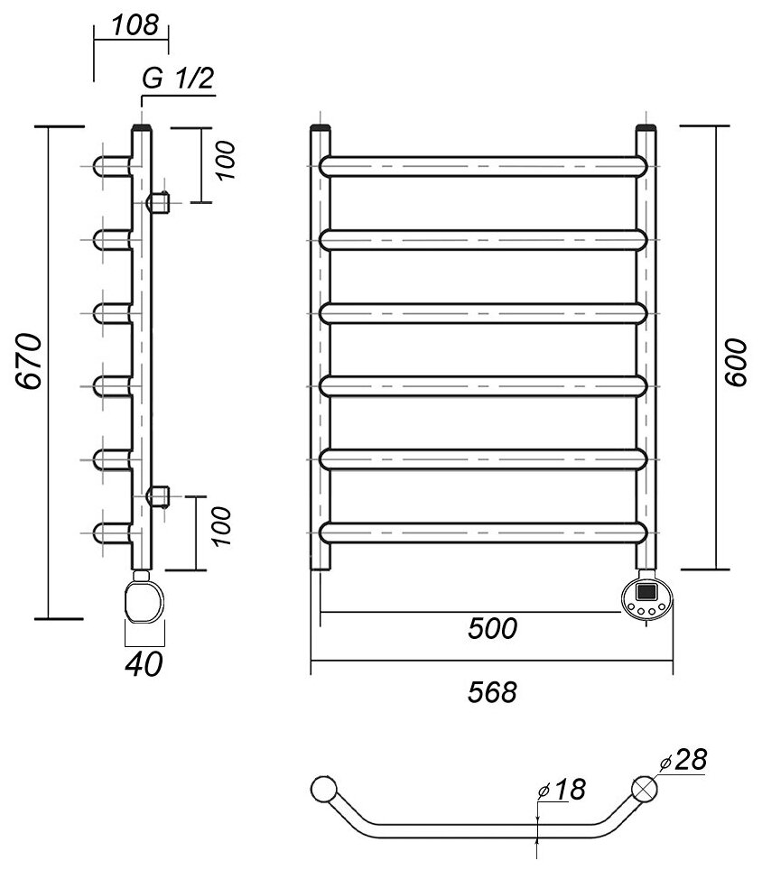 Полотенцесушитель электрический Domoterm Лаура П6 500х600 АБР ER
