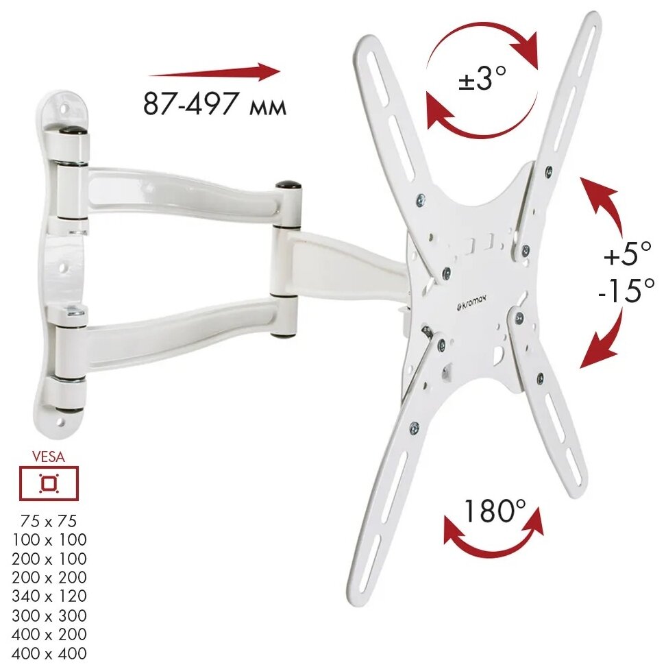 Кронштейн для телевизора Kromax TECHNO-5 белый 15"-55" макс.35кг настенный поворот и наклон