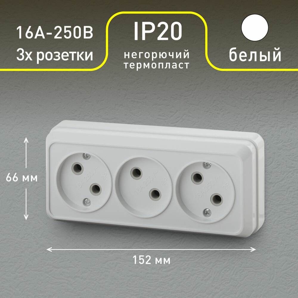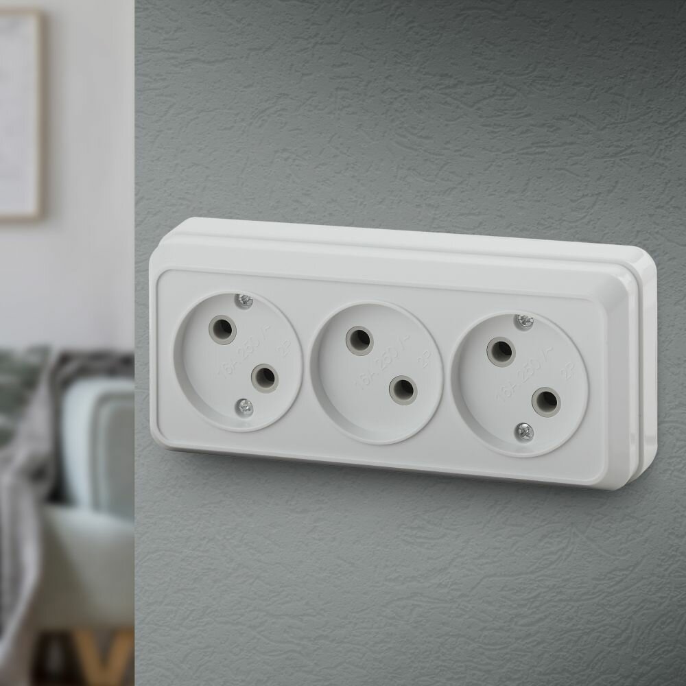 Розетка Розетка Intro Quadro 2-205-01 без заземления трехместная 3х2P 16А-250В IP20 открытой установки белая