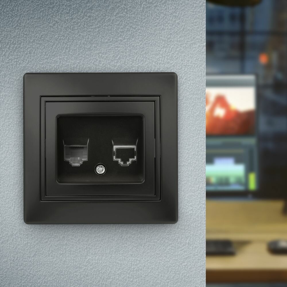 Розетка Розетка телефонная Intro Plano 1-302-05 RJ11 скрытой установки черный