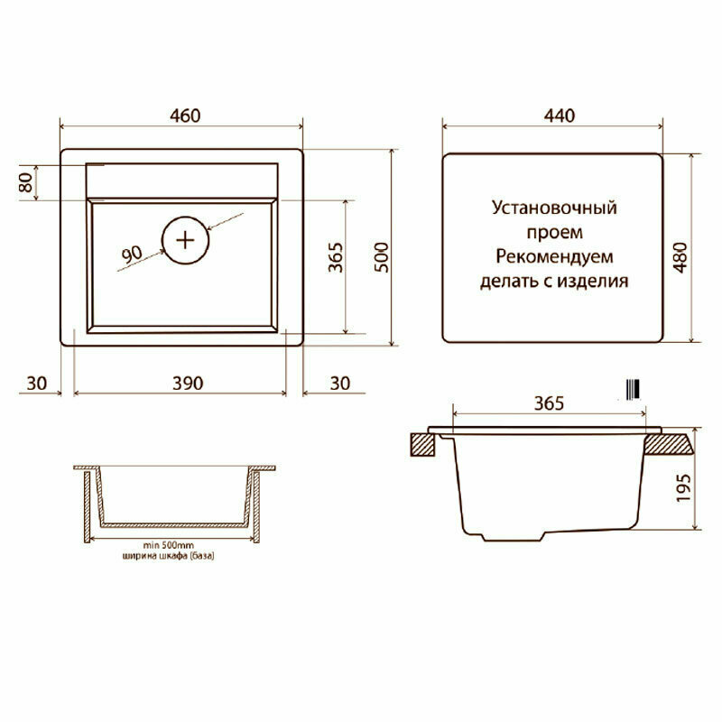 Мойка для кухни VIGRO врезная из искусственного камня (46*50 см), антрацит 7 283 ₽ Подробнее