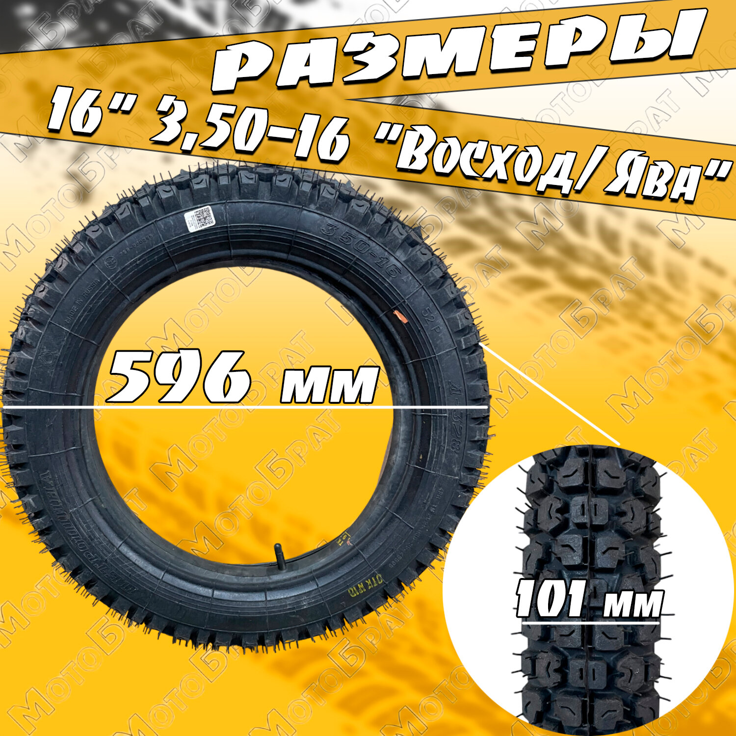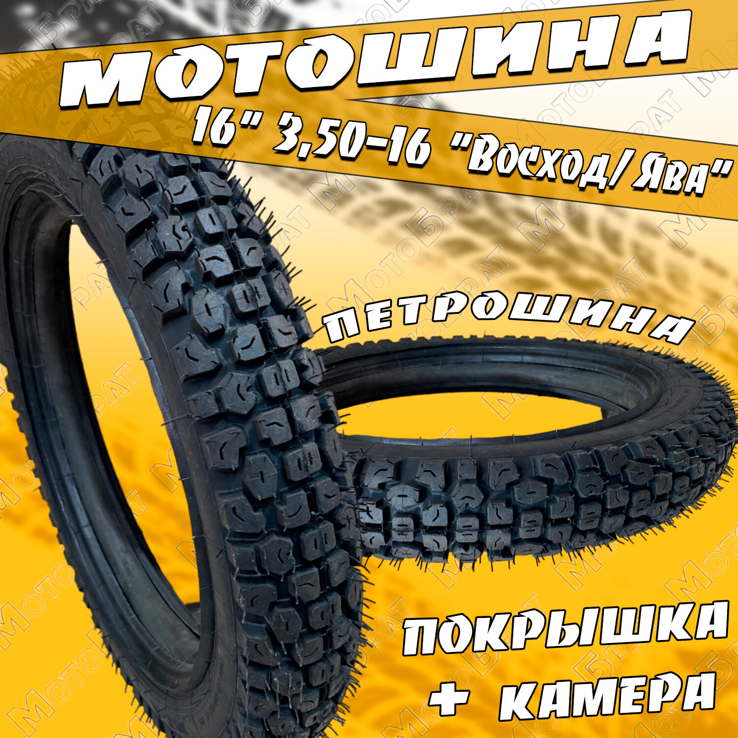Мотошины Покрышка (Петрошина) 3,50-16 на Восход/Яву (с камерой)