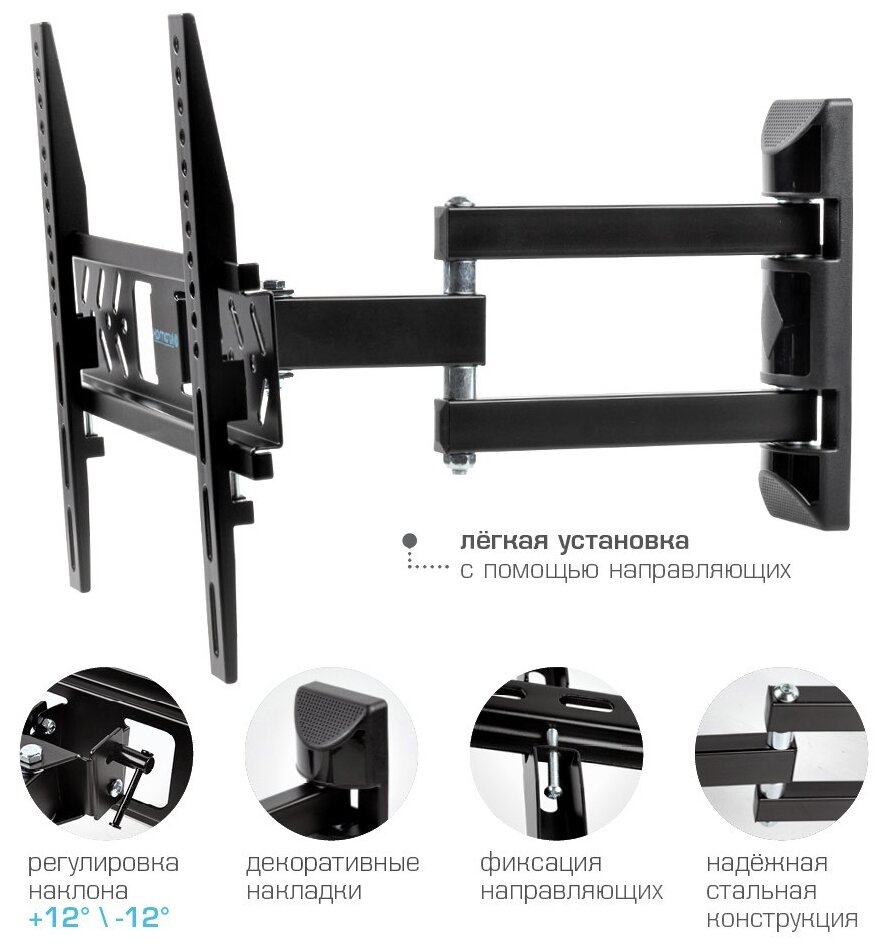 Лучшие цены. Стальной кронштейн PIXIS-XS подходит для телевизоров LED\LCD\OLED c диагональю от 22 до 55 дюймов (56-140 см), выдерживающий массу до 30 кг. Используемые специальные шайбы с низким коэффициентом трения в каждом шарнирном соединении позволяют плавно регулировать каждое из 2-х колен конструкции, поворачивая экран до 180°. Конструкция кронштейна позволяет изменять угол наклона вверх и вниз на 12° , плавно менять расстояние и положение экрана относительно стены в пределах 95-423мм, а так же производить монтаж в. Магазины в вашем городе.