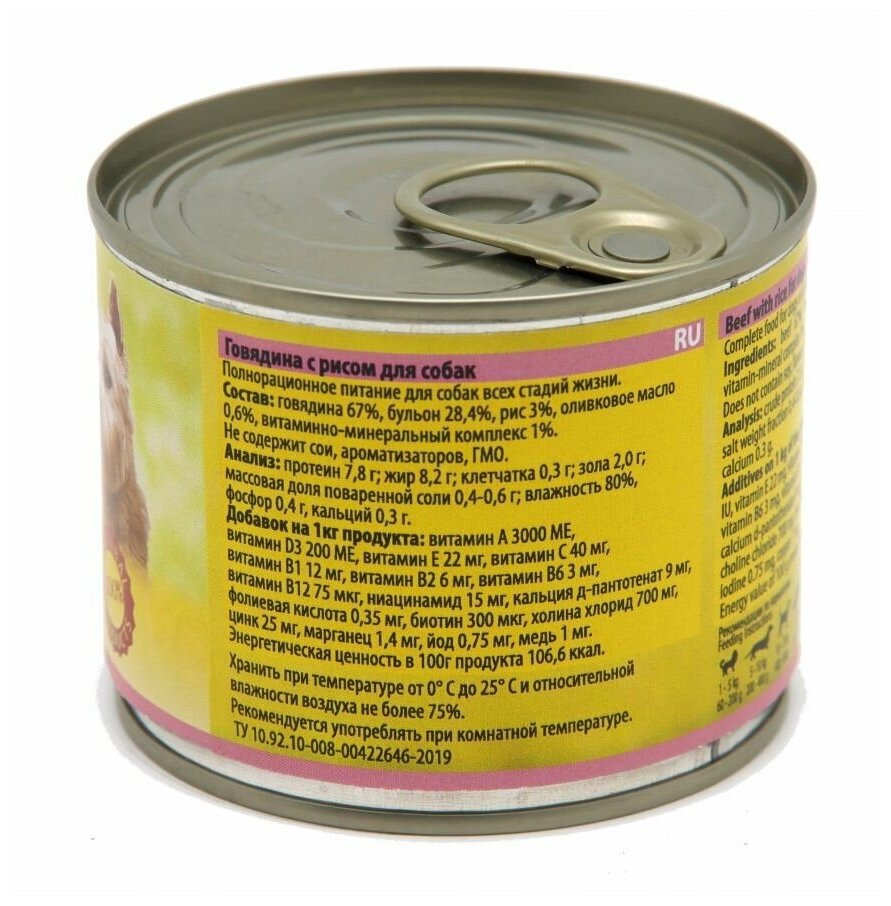 Консервы для собак с говядиной с рисом LOCAL 200гр