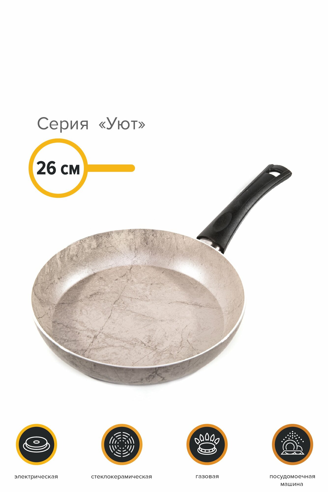 Сковородки Сковорода алюм. 26 см, Уют, мрамор бежевый, катюша, арт. 5010-260-7