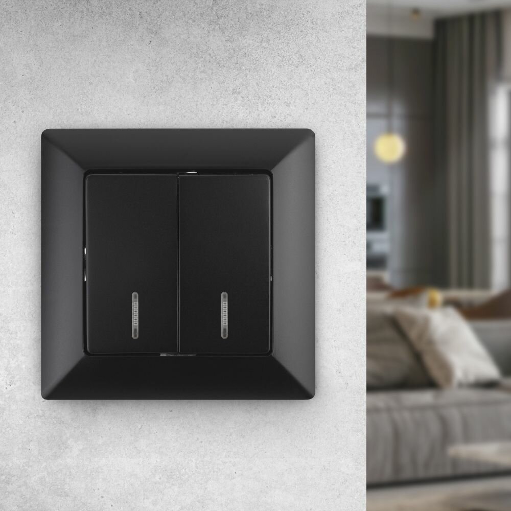 Выключатель Выключатель Intro Solo 4-105-05 двухклавишный с подсветкой 10А-250В IP20 СУ Solo черный