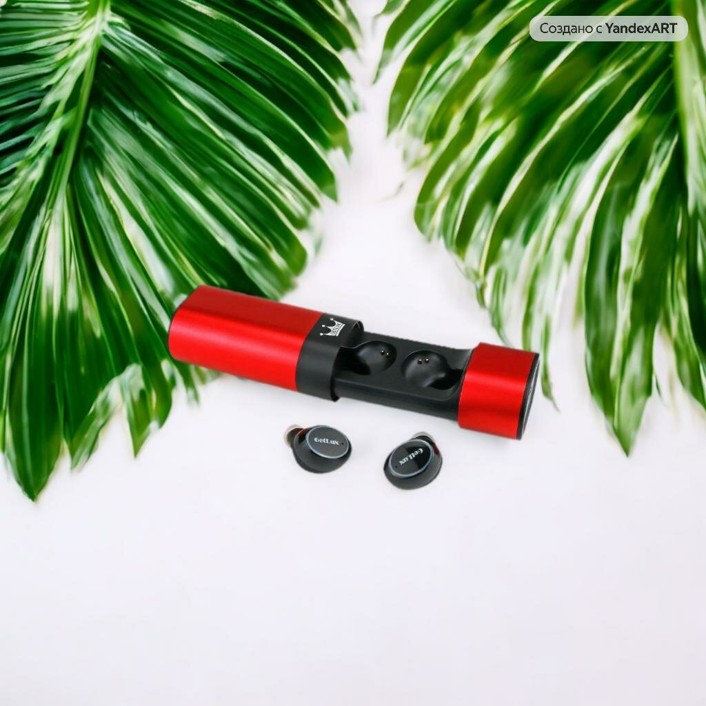 Наушники Беспроводные наушники "Getlux" nanopods. Bluetooth 5.0. С магнитным зарядным кейсом. Цвет кейса - красный, цвет наушников - черный.
