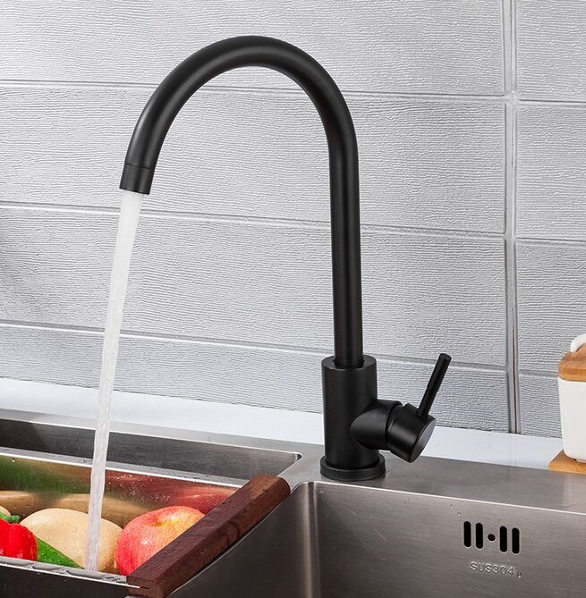FRAP F40899-4, Смеситель для кухни (черный, нержавеющая сталь, картридж 35mm, крепление на гайку)