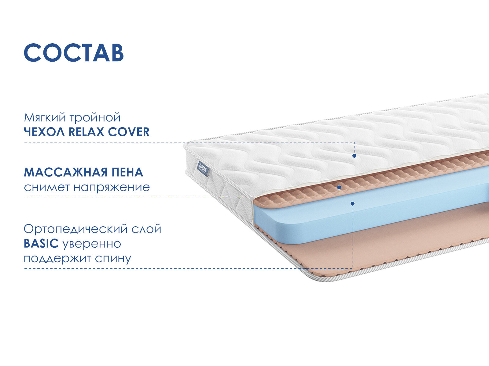 Матрас 90х200 беспружинный с микромассажным эффектом Dimax Relmas Foam Roll 8 888 ₽ Подробнее