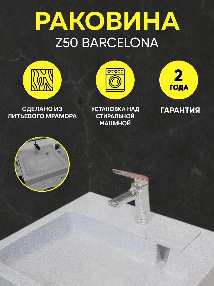Раковина над стиральной машиной Barcelona 60x50, цвет белый, литьевой мрамор 11 900 ₽ Подробнее