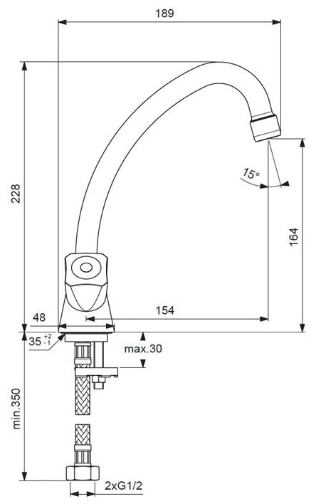 | Глубина струи | 389 мм / излив — 320 мм / |