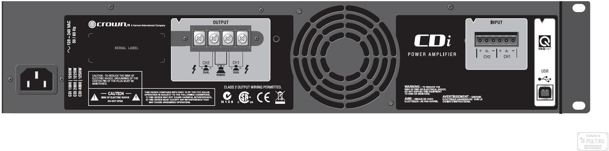 Усилитель Crown CDi1000 усилитель 2-канальный с DSP. Мощность (на канал): 700Вт 2Ом, 500Вт 4Ом, 275Вт 8Ом, 500Вт 70В. Мощность (мост): 1400Вт 4Ом, 1000Вт 8Ом, 1
