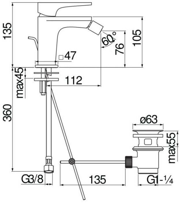 Смеситель для биде Nobili Seven SE124119/1BM Velvet black