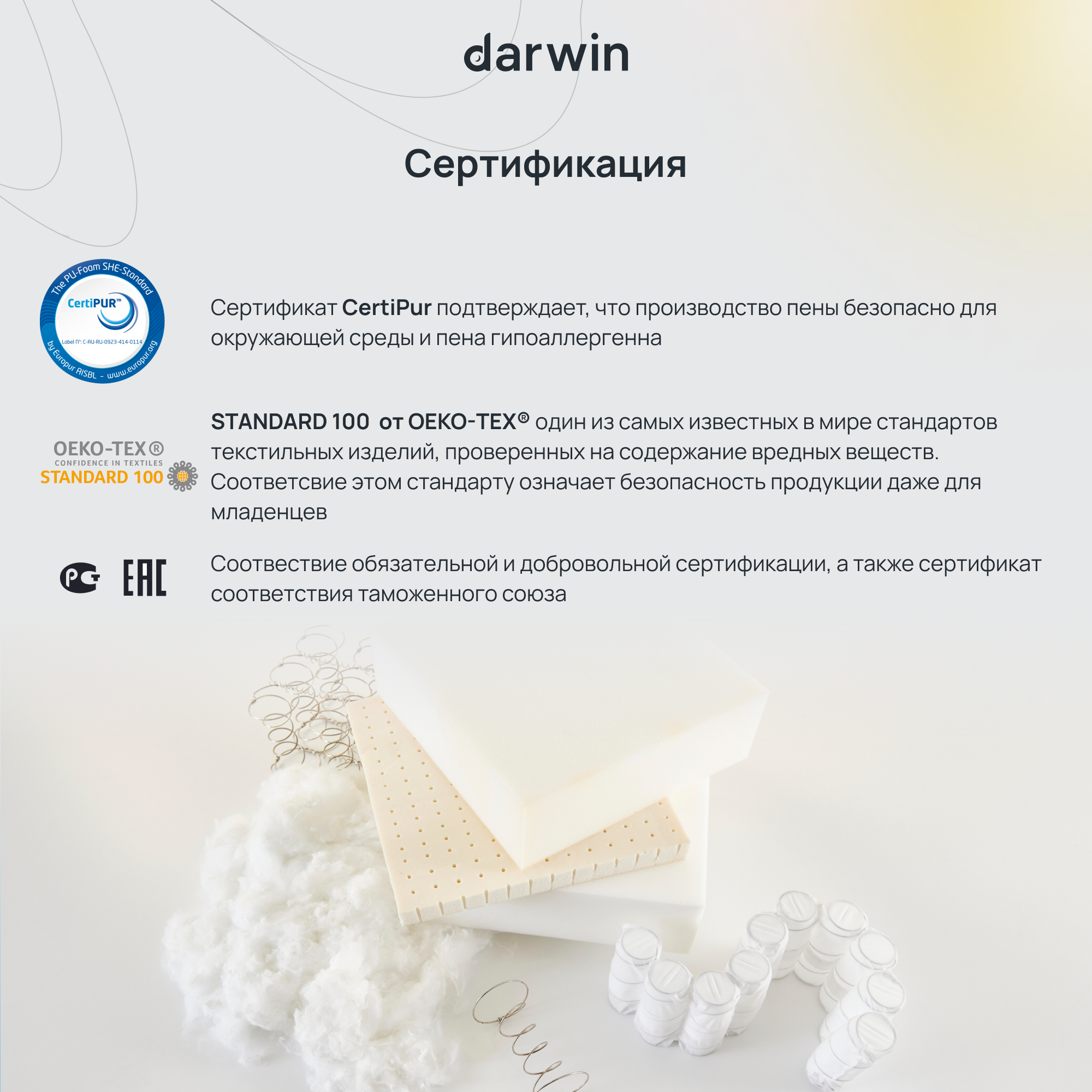 Матрасы Пружинный матрас Darwin Cascade 80x190, независимые пружины, высота 22 см, 1 шт, белый
