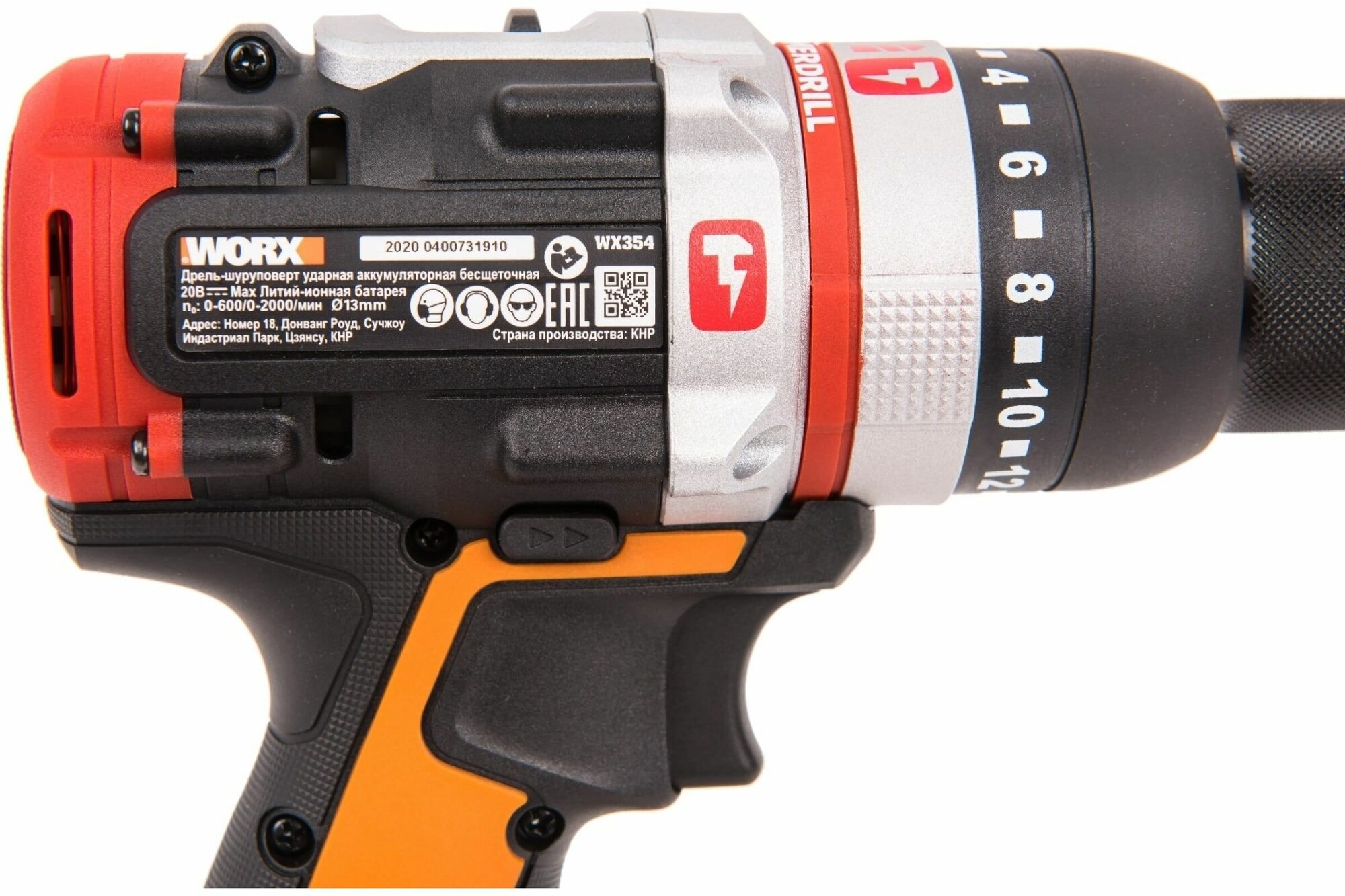 Дрель / шуруповерт Дрель-шуруповерт ударная WORX WX354 20V 60Нм бесщеточная аккумуляторная