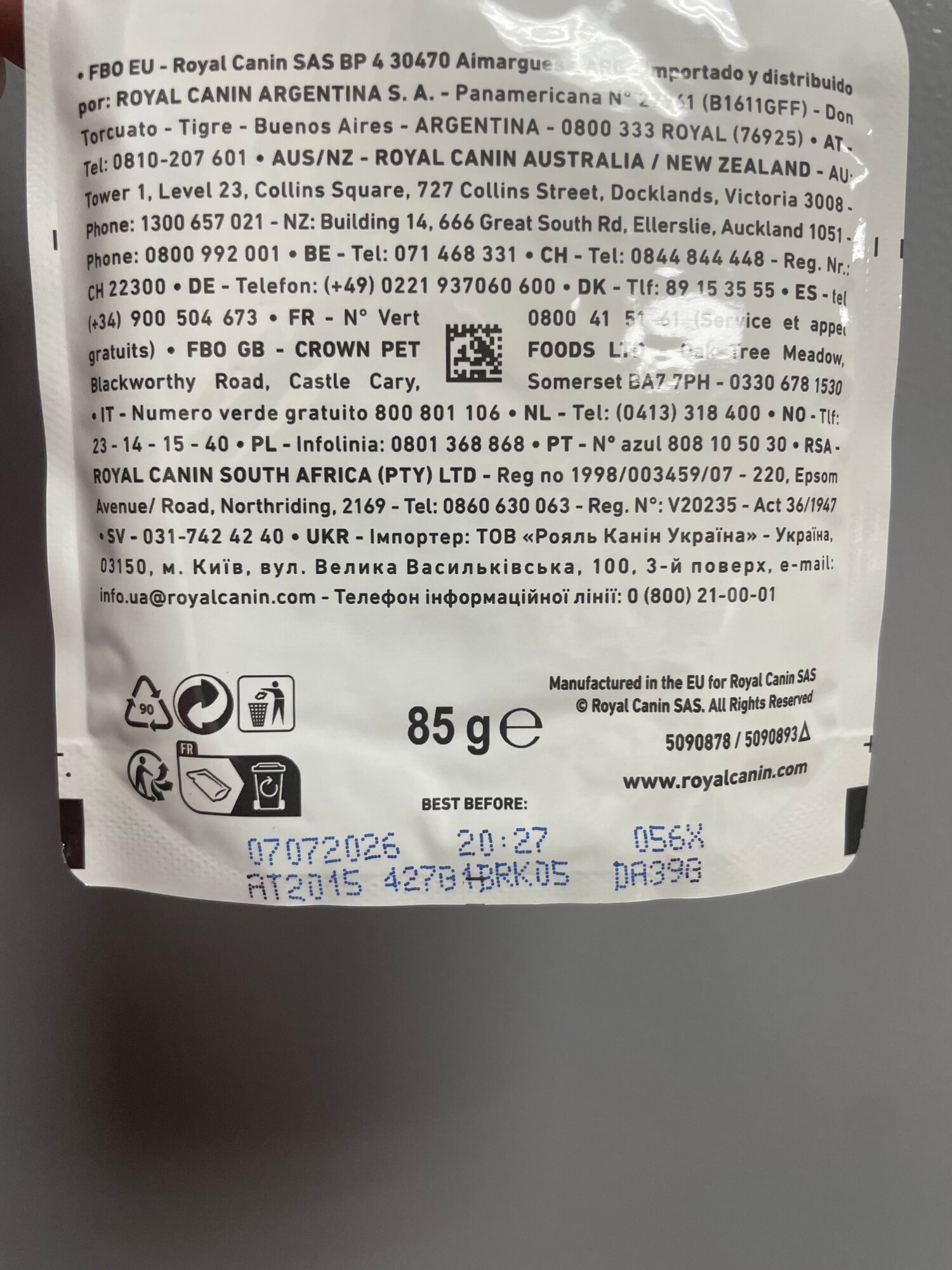 Корм для кошек Влажный корм для кошек Royal Canin Gastro Intestinal, при проблемах с ЖКТ, 85 г (кусочки в соусе)