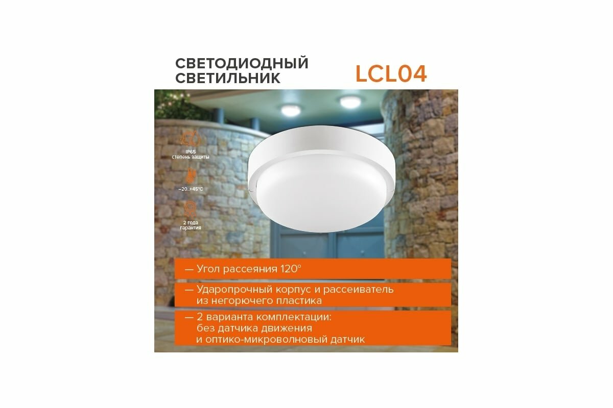 Прожектор / светильник Wolta Светодиодный светильник ЖКХ LED 12Вт, 6500K Холодный свет, IP65, 960лм, круг LCL04-12W-R01-6K
