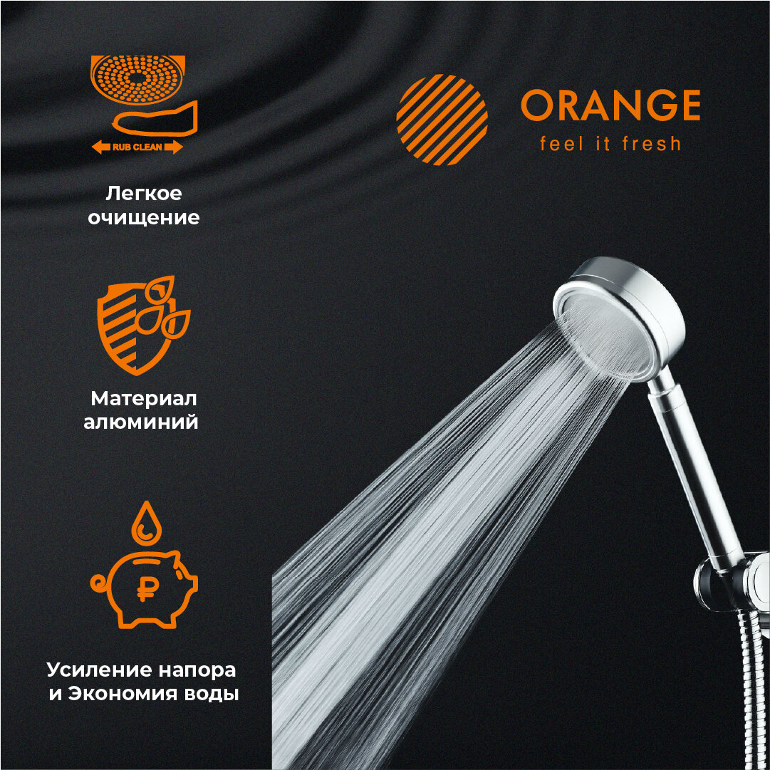 Душевая система Лейка для душа алюминий Orange LM33pd, 1 режим, 80 мм, цвет сталь