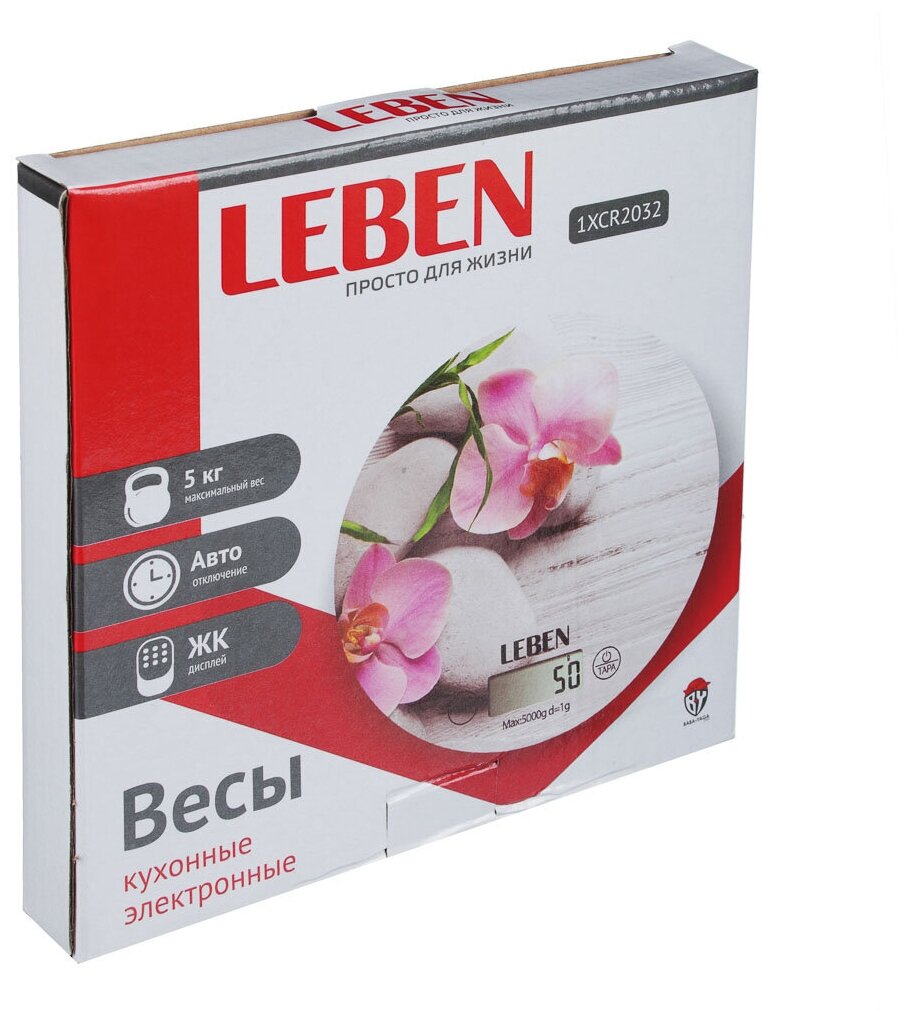 Весы Весы кухонные электрон до 5кг стекл платформа, LEBEN