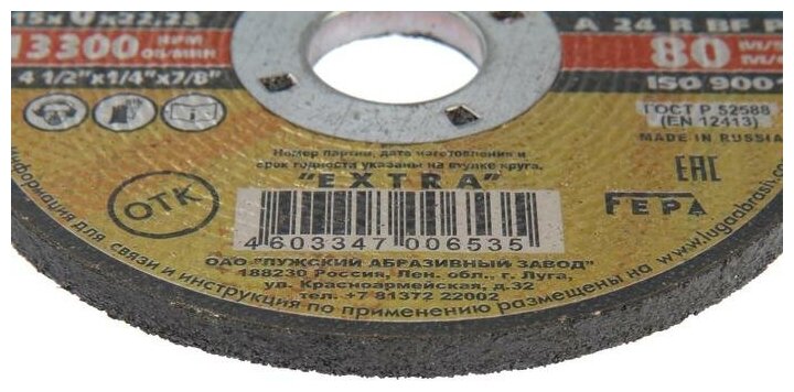 Круг шлифовальный абразивный ″Луга″ по металлу, 115х6х22,23мм (3650-115-06)