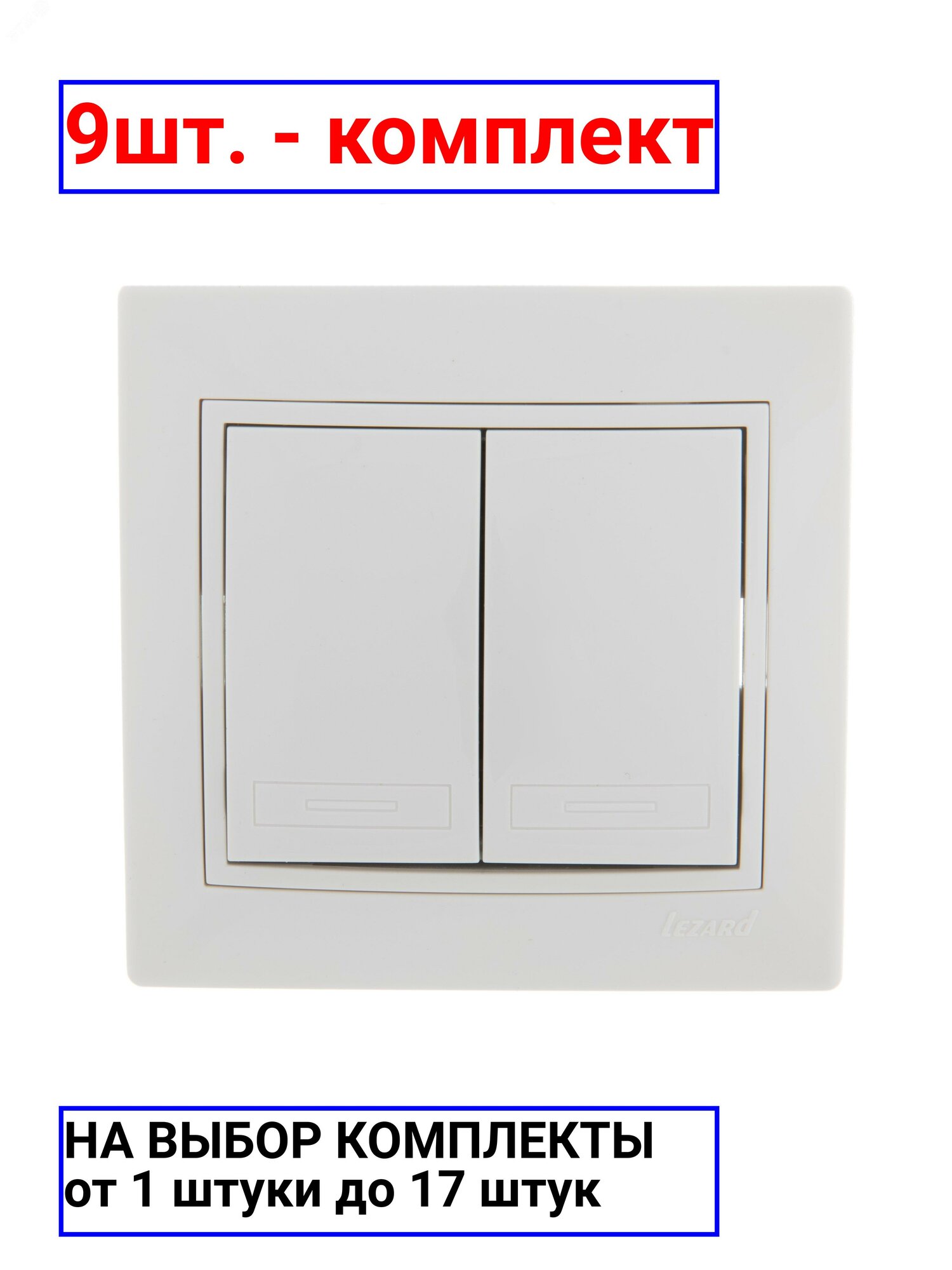 Выключатели 9шт. - MIRA Выключатель двухклавишный белый с белой вставкой / Lezard; арт. 701-0202-101; оригинал / - комплект 9шт