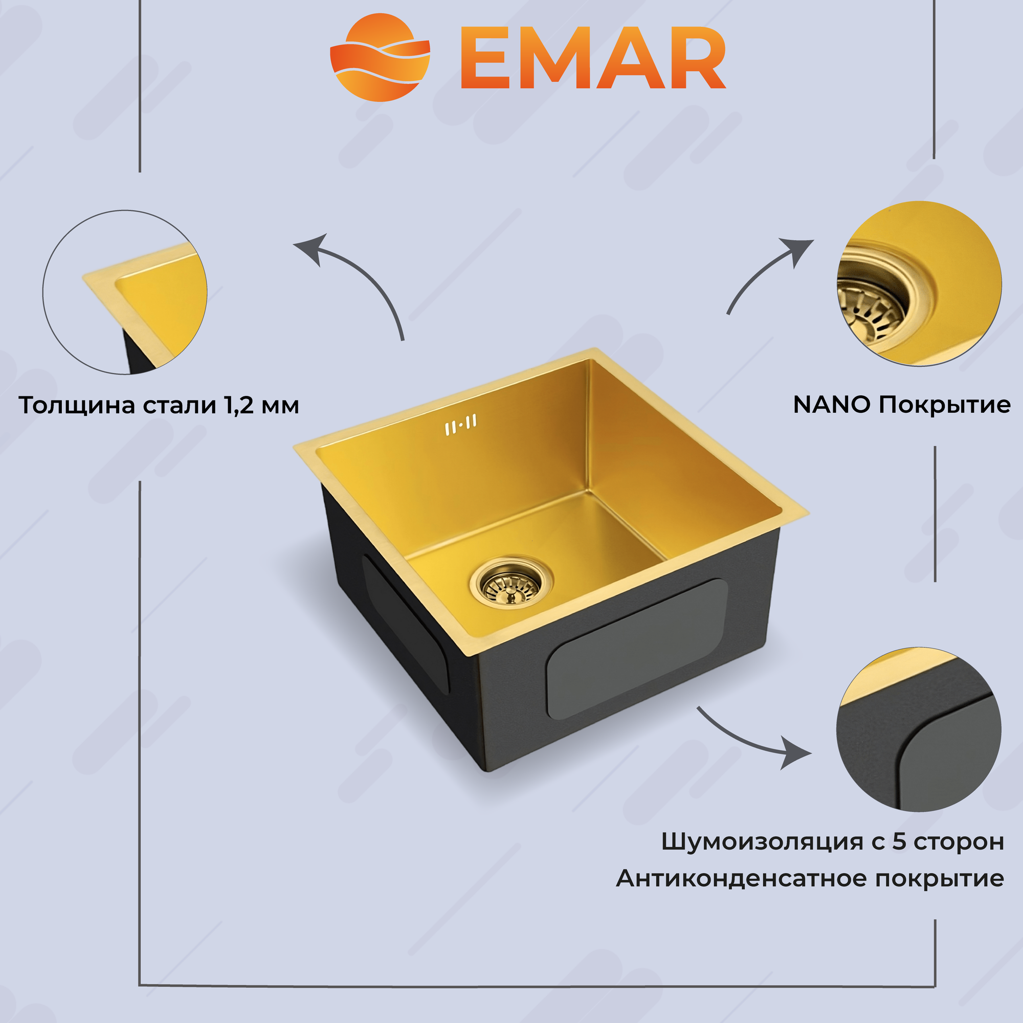 Мойка нержавеющая для кухни EMAR 450х450 EMB-113 PVD Nano Golden