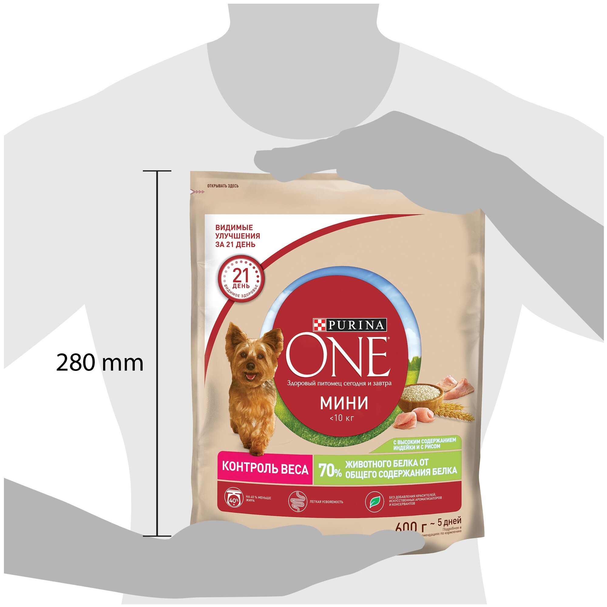 PURINA ONE мини Здоровый вес 600 г сухой корм для собак мелких пород, склонных к набору веса, с высоким содержанием индейки и с рисом