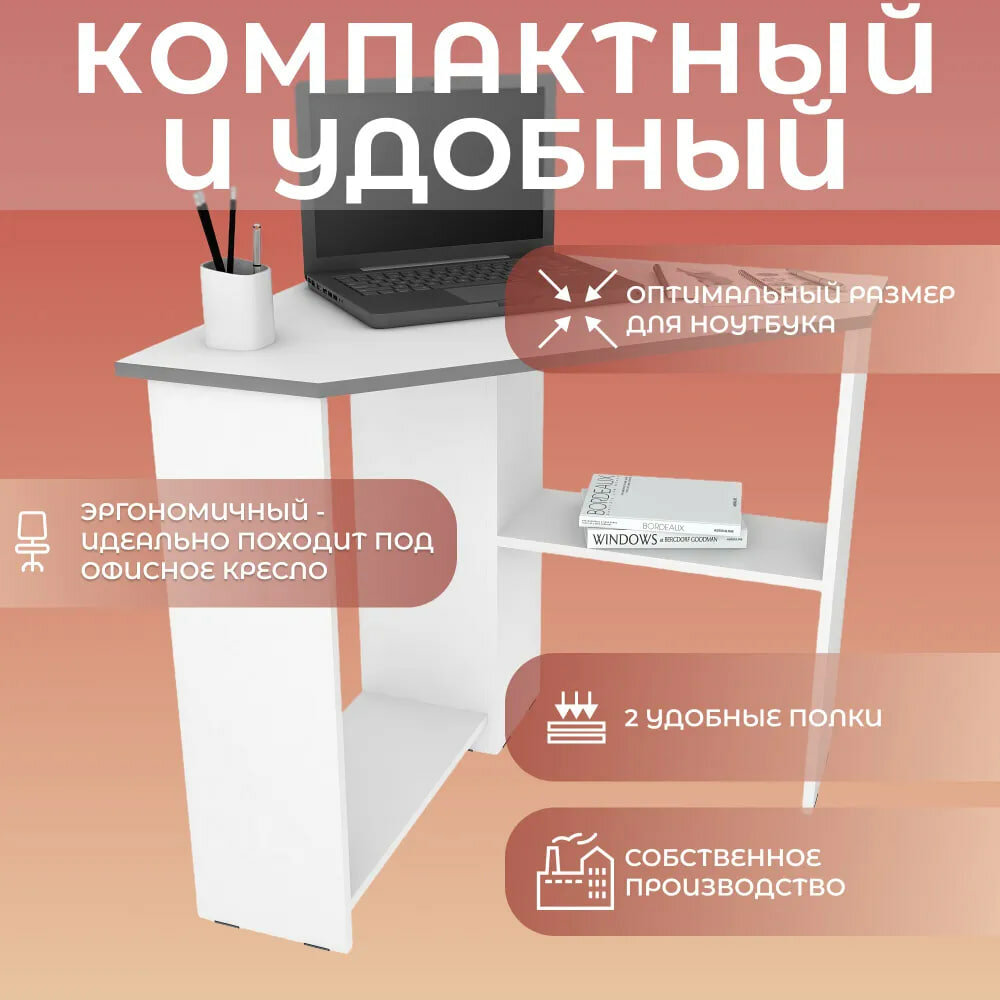Письменный стол, компьютерный стол угловой с полками Corner 900 Белый/Серый, 90*90 см. 4 010 ₽ Подробнее
