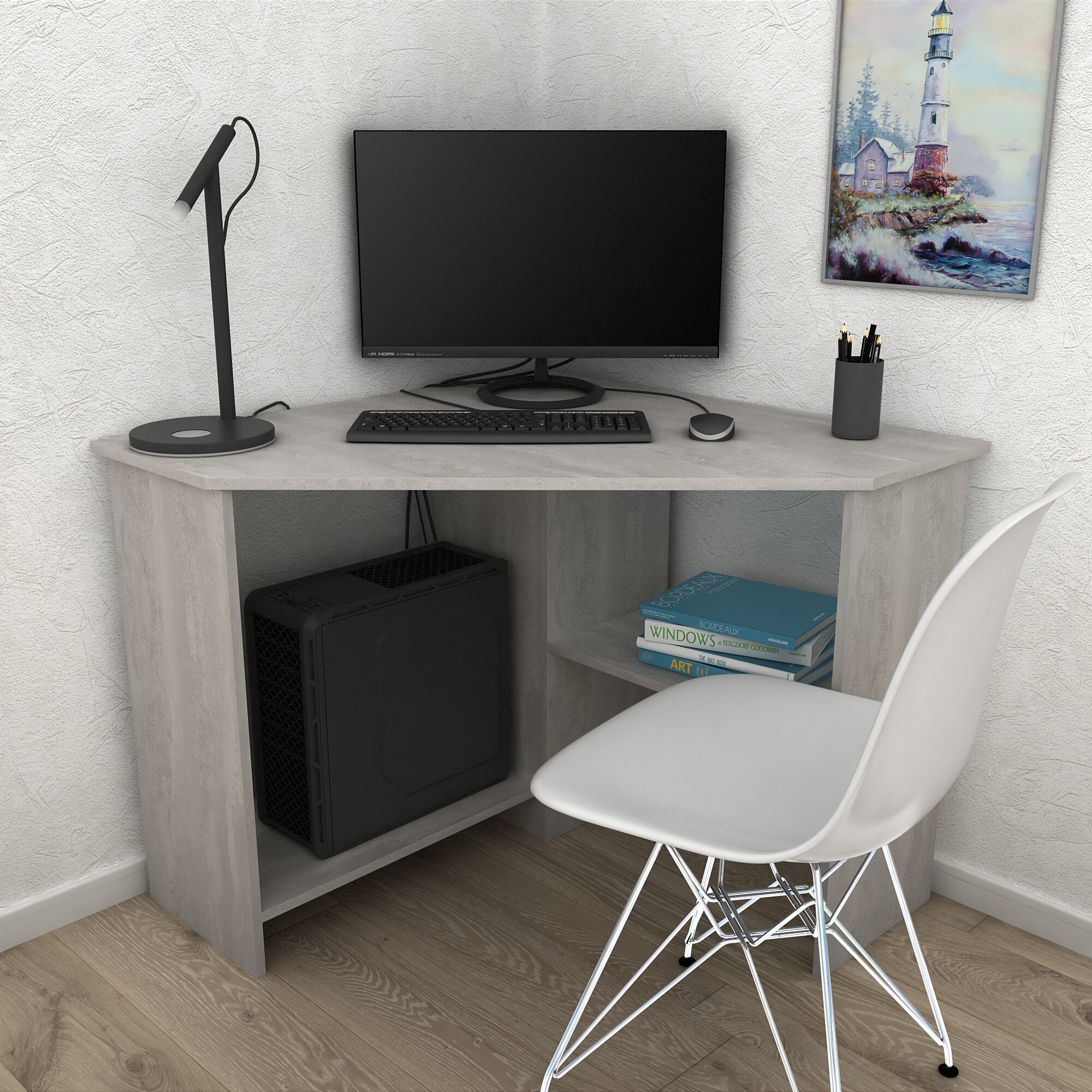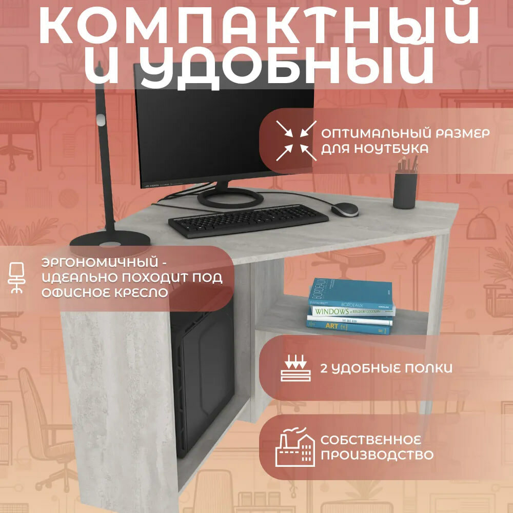 Офисные столы Письменный стол, компьютерный стол угловой с полками Corner 900 Бетон, 90*90 см.