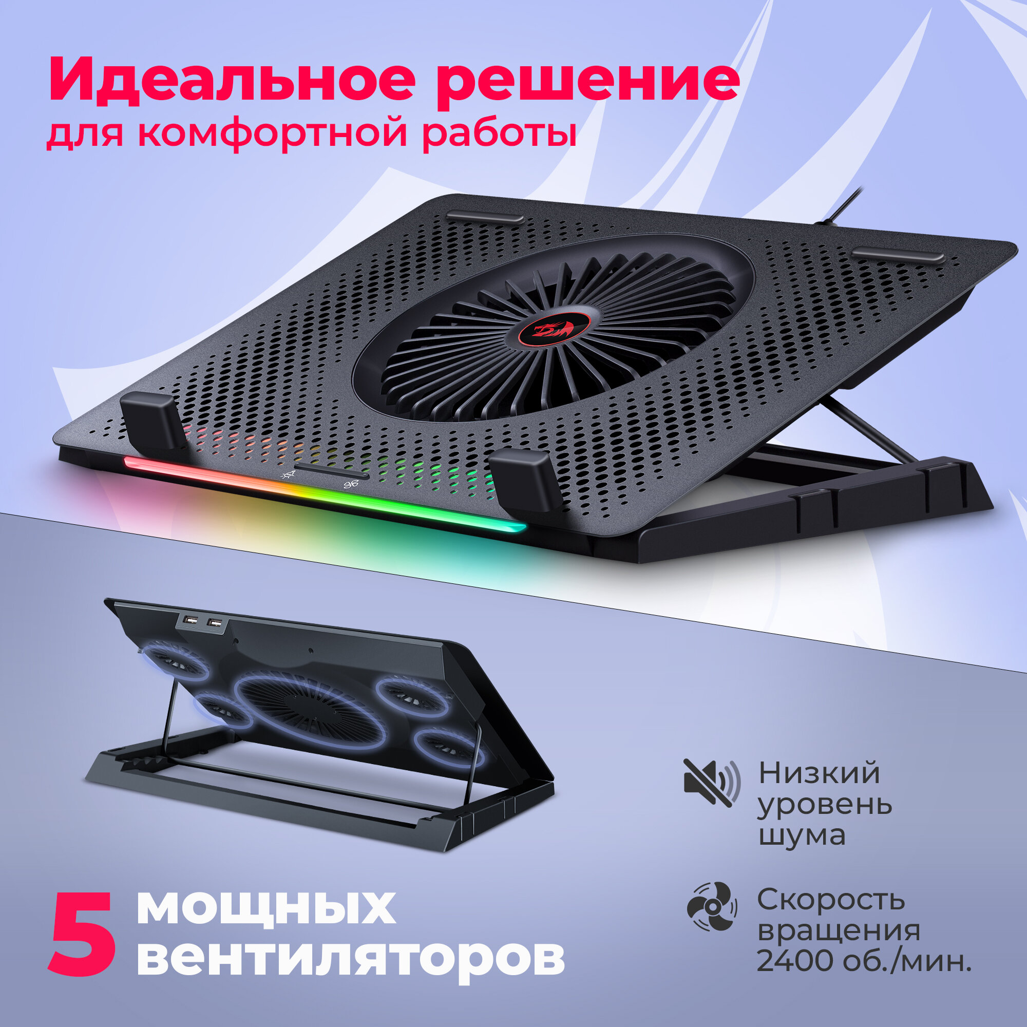 Подставки для ноутбуков Подставка для ноутбука с активным охлаждением и подставкой под телефон Redragon Ivy RGB