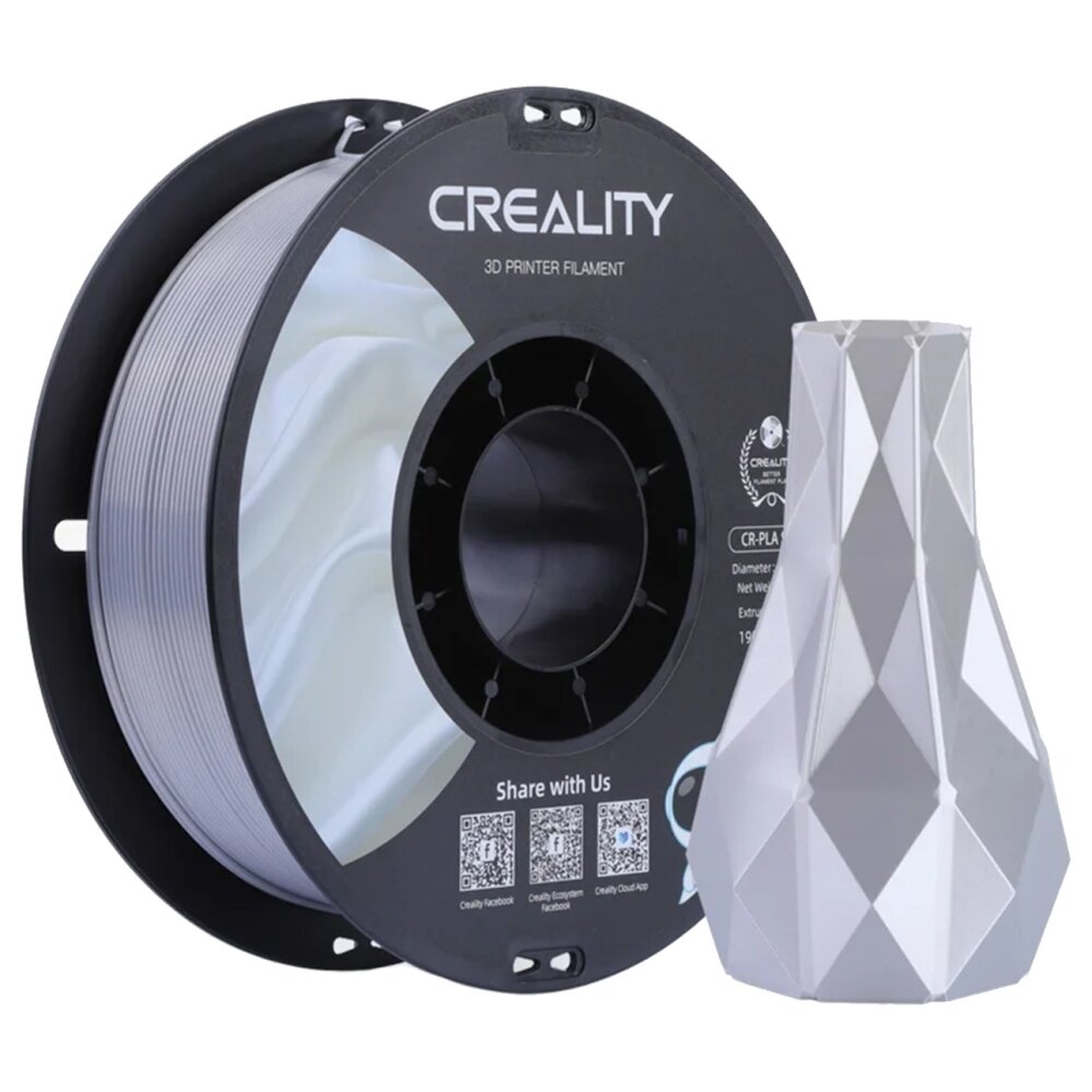 Катушка CR-Silk Silver пластика Creality, серебристый, 1,75 мм 1кг, для 3D принтеров 3301120007