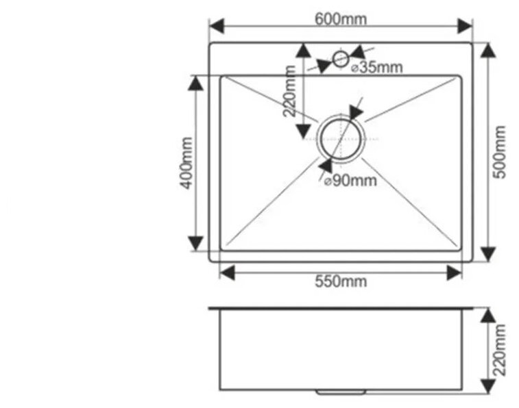 Мойка врезная 60х50 см, графит, дизайн толщина 3,0 х 1 мм, 13 900 ₽ Подробнее