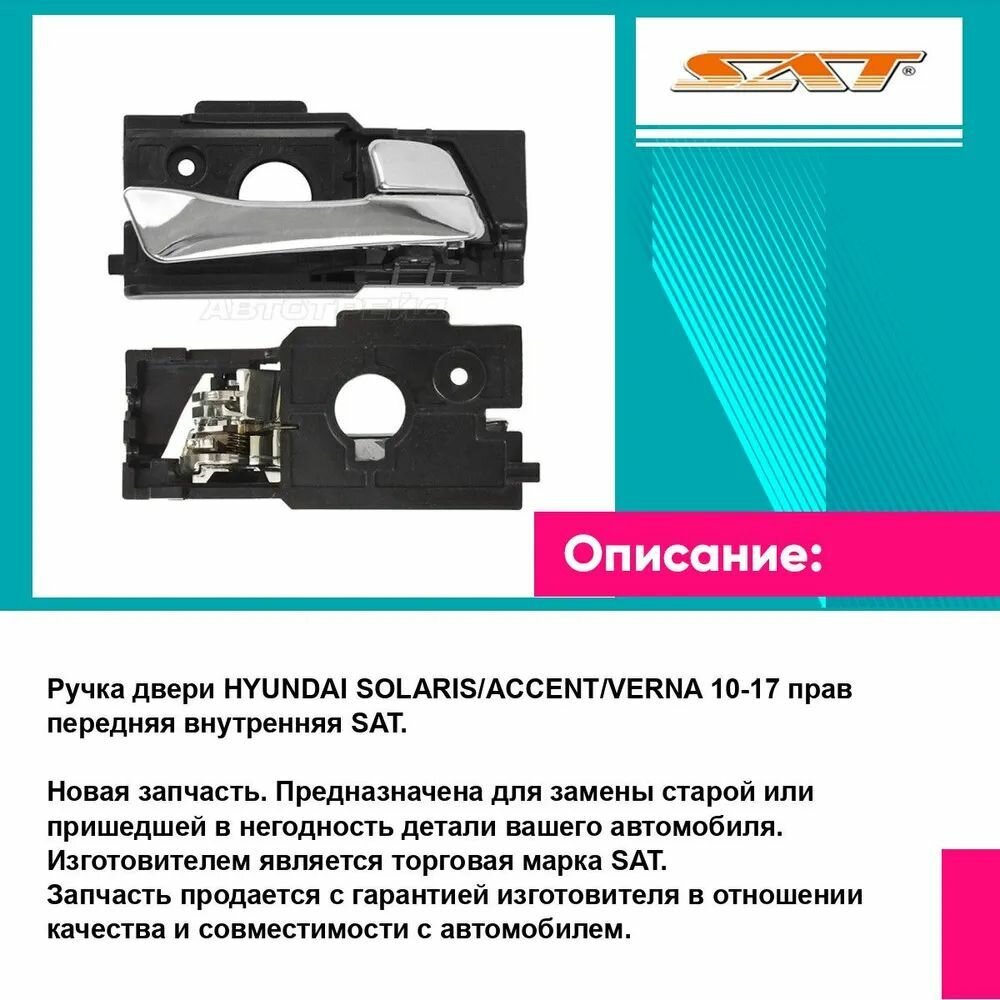 Ручки Ручка двери HYUNDAI SOLARIS/ACCENT/VERNA 10-17 прав передняя внутренняя SAT хендай солярис