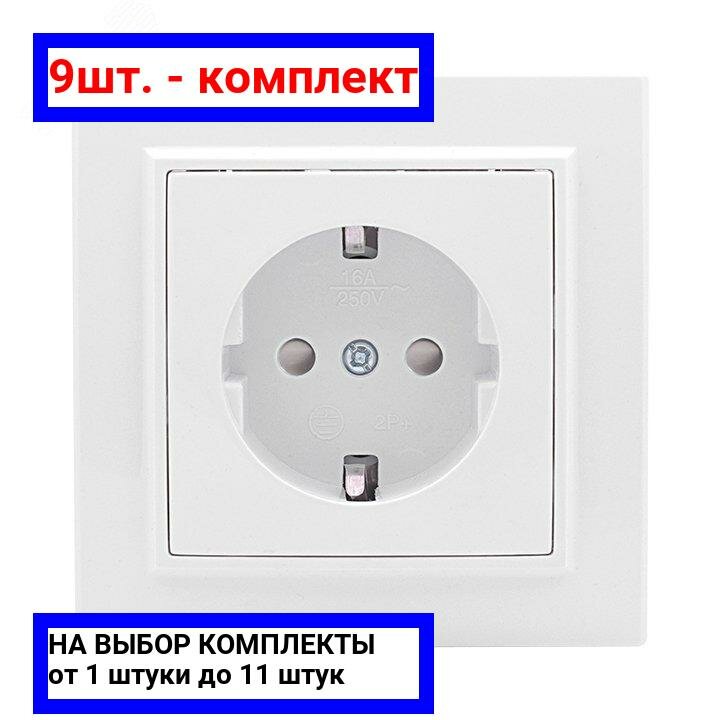 Рамки для розеток и выключателей 9шт. - Розетка Минск одноместная СП с заземлением 16А белая защитные шторки / EKF; арт. ERR16-028-100; оригинал / - комплект 9шт