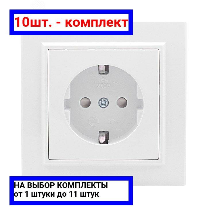 Рамки для розеток и выключателей 10шт. - Розетка Минск одноместная СП с заземлением 16А белая защитные шторки / EKF; арт. ERR16-028-100; оригинал / - комплект 10шт