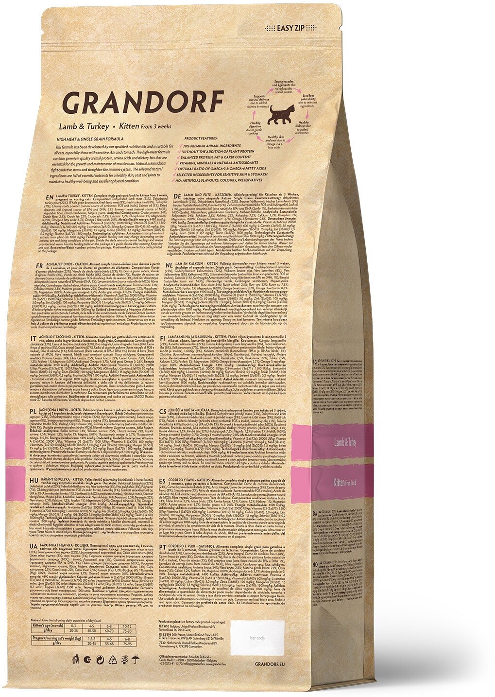 GRANDORF SINGLE GRAIN KITTEN LAMB & TURKEY низкозерновой для котят с ягненком и индейкой (2 кг)