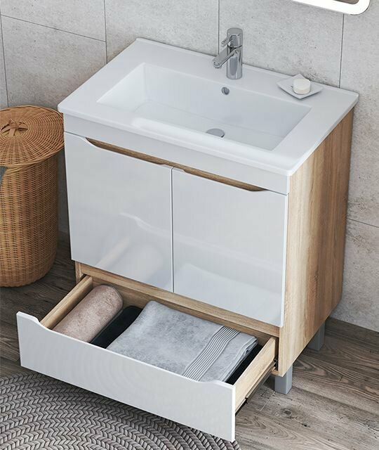 Тумбы под умывальник Тумба с раковиной Vigo Grani 750-2-1 белая/дуб сонома